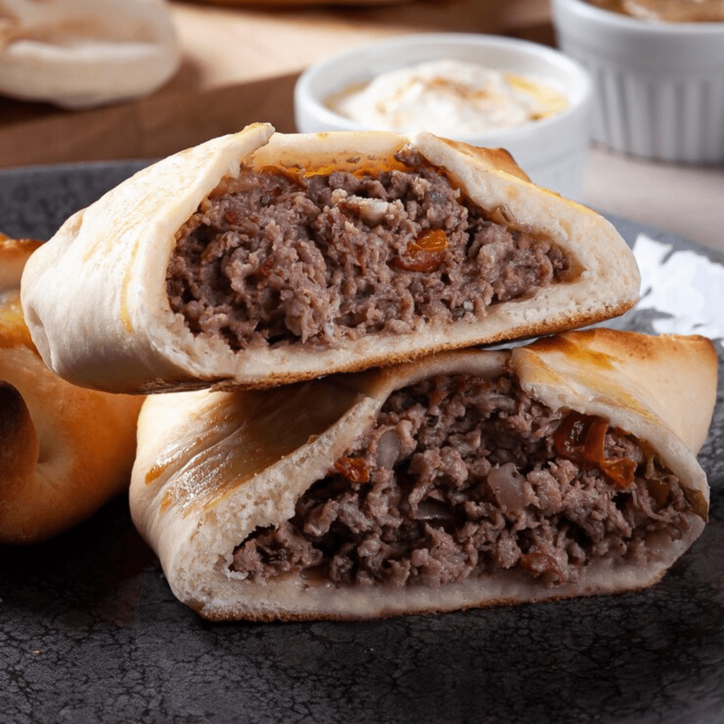 Aberta ou fechada, nossa esfiha é recheada com carne moída suculenta, tomate, cebola e um toque especial de limão.