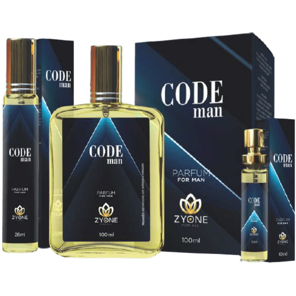O Perfume Code Man Zyone é uma fragrância para quem é VIP, e é extremamente seletiva, reservada para aqueles do universo privado. Notas de topo: Limão e Bergamota, Notas de coração: Anis estrelado, flor de Oliveira e Madeira Guaiace, Notas de fundo: Couro, Fava Tonka e Tabaco