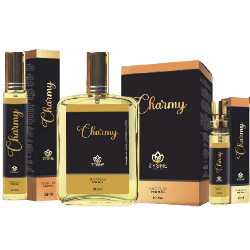 O Perfume Charm Zyone é feito para homens modernos que estão sempre em movimento e possuem a personalidade forte. Amadeirado moderado com madeira de cedro e notas de pimenta rosa. Será conhecido por sua irreverência, a linha perfumista é criativa e envolvente.