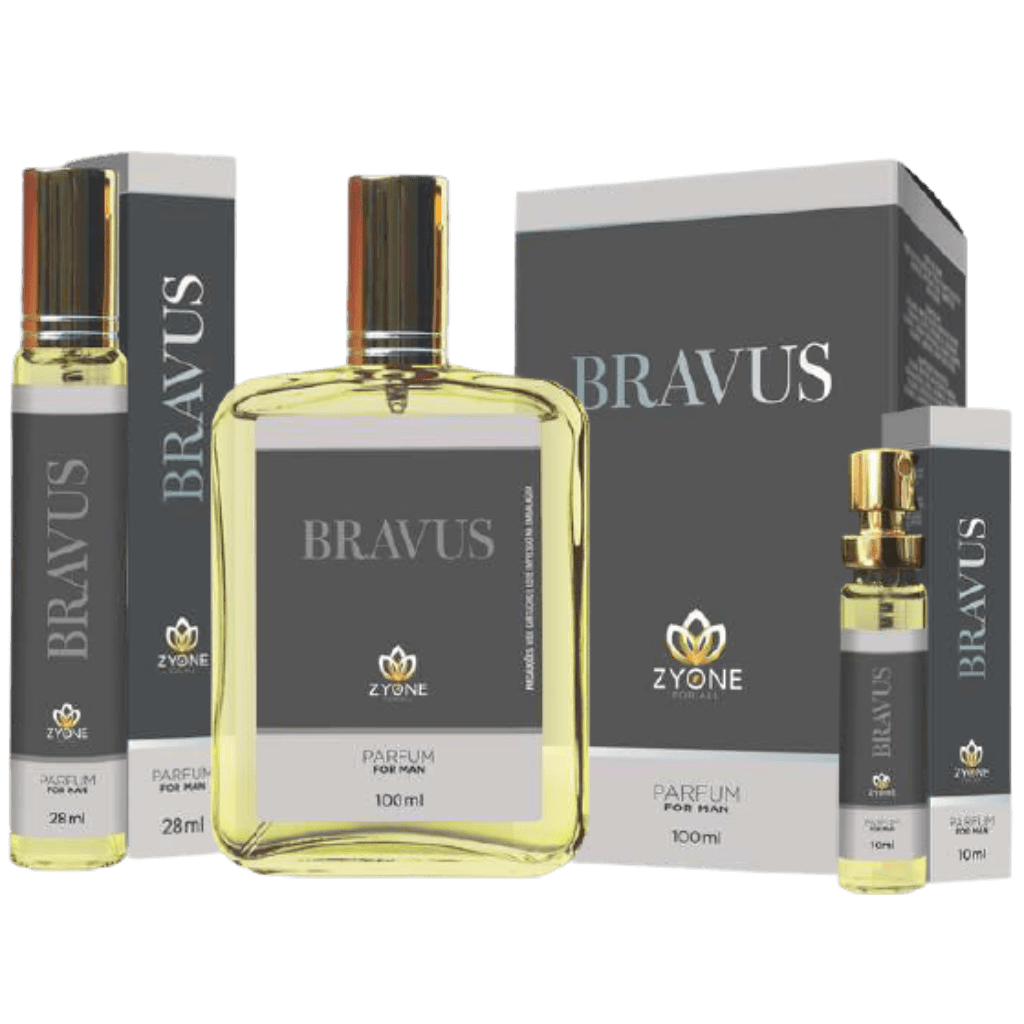 Perfume Bravus Zyone é uma fragrância que revela um homem jovem, extremamente sedutor e pujante. Bravus é Uma fragrância moderna e cheia de energia. Notas de topo : pimenta branca, pimenta preta e bergamota, Notas de corpo : sálvia e cedro, Notas de fundo : fava tonka, cacau e madeira de âmbar.