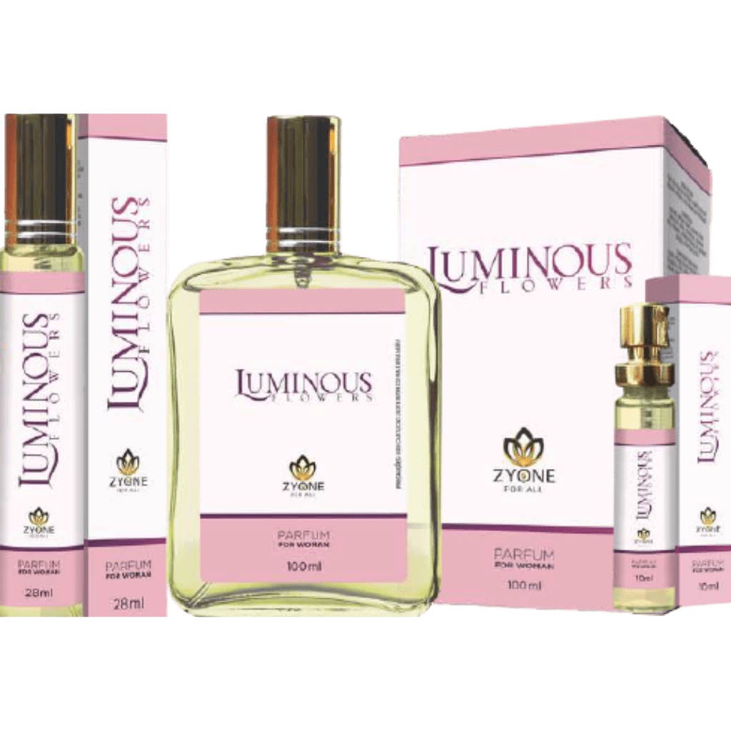 Conheça mais sobre o ZYONE LUMINOUS FLOWERS PIRÂMIDE OLFATIVA: Chypre. Floral NOTAS DE SAÍDA: Bergamota, Mandarina, Pera e Maçã. NOTAS DE CORPO: Peônia, Rosa, Cassis, Jasmim e Ylang Ylang. NOTAS DE FUNDO: Baunilha, Âmbar, Musk e Mel. É uma explosão fresca e floral de feminilidade. Sua fragrância contrasta o poder contundente de uma base de baunilha com o romantismo de uma nota de peônia, além da presença central e radiante do ylang ylang. Inspiração Perfume Luminous Flowers Zyone é Inspirado no Good Girl Blush
